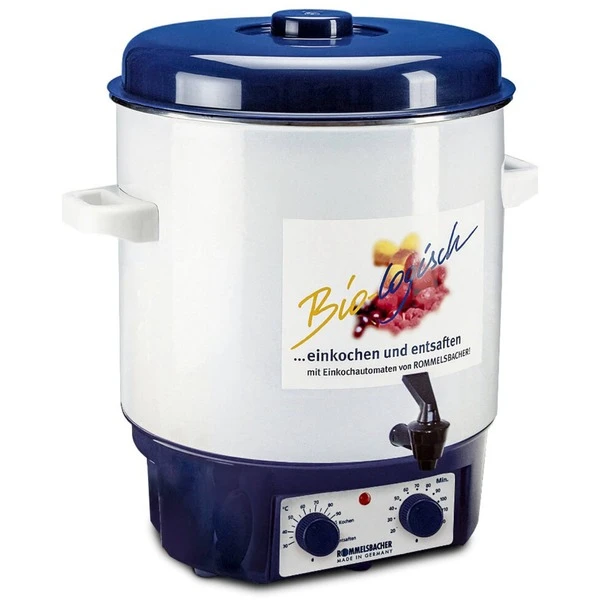 Einkochen liegt wieder voll im Trend! Mit dem praktischen Einkochvollautomaten KA 1804 kann man Obst, Gemüse, Säfte und Marmelade auf komfortable Weise konservieren. Im Winter ist er ideal zum Ausschenken von heißem Glühwein oder Punsch. Die eingestellte Temperatur wird durch den Präzisionsthermostat zuverlässig gehalten und über den integrierten Zapfhahn können Getränke bequem direkt in Tassen abgefüllt werden. Auch zum Warmhalten größerer Mengen Speisen ist der KA 1804 ein beliebter Helfer bei Festen und Veranstaltungen. Der KA 1804 ist mit einer Einkochvollautomatik und Zeitschaltuhr ausgestattet. Durch eine patentierte Technik beginnt die Zeit erst zu laufen, wenn die Einkochtemperatur erreicht ist; die Steuerung des Einkochvorgangs erfolgt somit automatisch. Art.-Nr.: 1519316