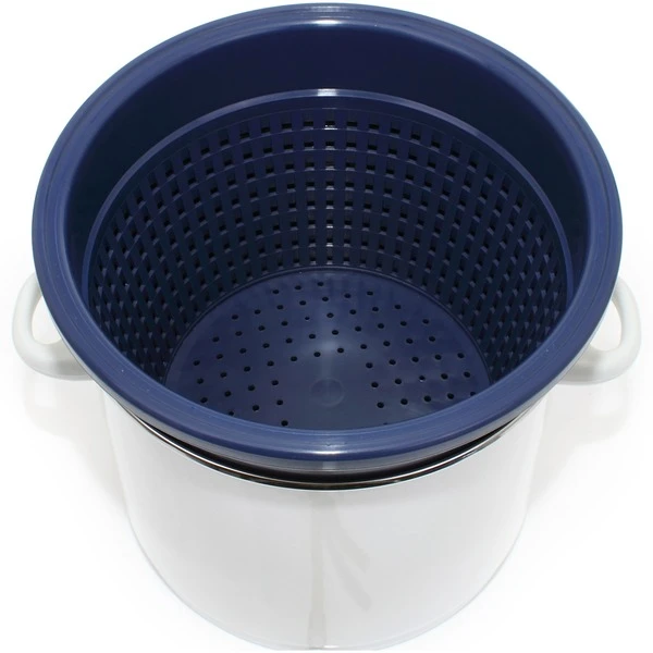| Weitere Informationen | Topfdurchmesser: 28 cm, Fruchtkorb aus lebensmittelechtem Kunststoff mit 10 Liter Inhalt, Saftauffangbehälter: 4 Liter | ||