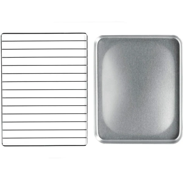 | Zubehör | vorhanden | Abklappbares Krümelblech, Brat-/Backblech, verchromter Grillrost | |