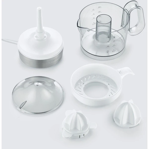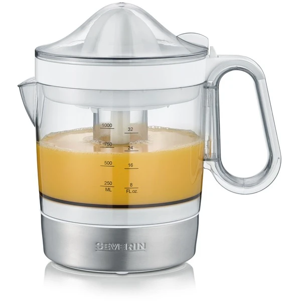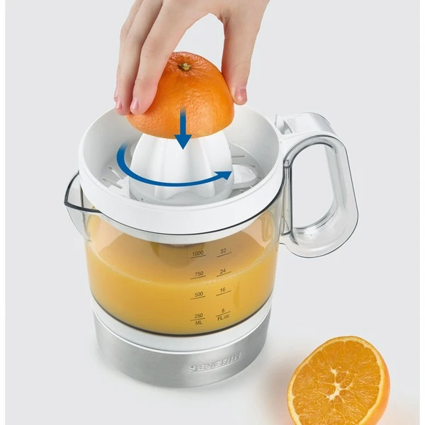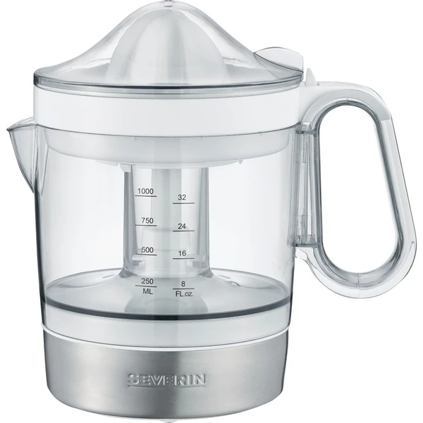 Die Zitruspresse CP 3535 von Severin verfügt über eine Leistung von 40 Watt und startet automatisch bei Druck auf den Presskegel. Für perfekte Saftausbeute sorgen der praktische Rechts-Links-Lauf und die zwei verschieden großen Presskegel für große und kleine Früchte. Der XXL Saftbehälter fasst bis zu 1.0 l frisch gepressten Saft und verfügt über eine beidseitige Skala und ist somit ideal für Rechts- und Linkshänder geeignet. Über das Sieb lässt sich der Fruchtfleischanteil individuell einstellen. Abnehmbare Einzelteile erleichtern die Reinigung.Art.-Nr.: 1741092