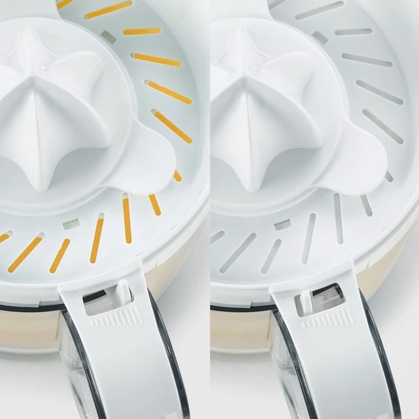 | Funktionen | Einstellbarer Fruchtfleischanteil , Rechts-/Linkslauf, Start-/Stopp Automatik | ||