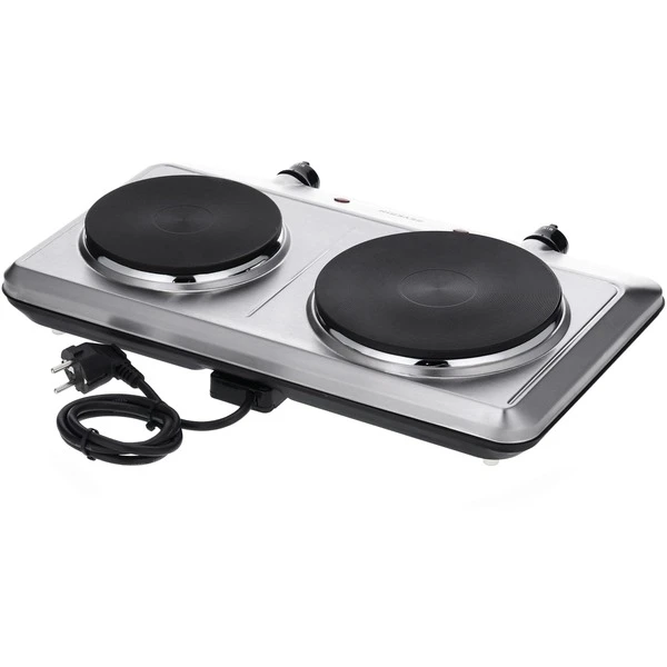 Die autarke und freistehende Kochplatte Severin KP 1014 bietet zwei Elektro-Kochzonen aus Gusseisen mit stufenloser Temperaturregelung sowie einer Kontrolleuchte.Art.-Nr.: 1082077
