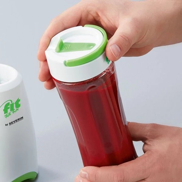 Der Severin Standmixer Smoothie Mix & Go (SM 3735) in Weiß-Grün ist Mixer und Trinkbehälter in einem und eignet sich daher optimal für unterwegs oder beim Sport. Ausgestattet ist er mit einem Edelstahlmesser sowie zwei spülmaschinengeeigneten und abnehmbaren Trinkbehältern aus Tritan (Bisphenol A frei) mit Deckel. Zudem besitzt der Standmixer Smoothie Mix & Go rutschfeste Gummifüße und eine Sicherheitsabschaltung, um Zwischenfälle zu vermeiden.Art.-Nr.: 1168008