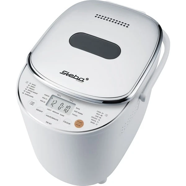 Mit dem Brotbackautomat BM 3 von Steba lassen sich leckeres Brot, Kuchen, Marmelade und vieles mehr zubereiten. 12 Programme und drei separate Einstellungen für die gewünschte Bräunungsstufe sorgen für optimale Ergebnisse. Praktisch beim Brotbackautomat BM 3 ist die herausnehmbare Brotbackform mit Antihaftbeschichtung. Über Touch-Control mit großem Display lässt sich jedes Programm bequem einstellen und durch das Sichtfenster im Deckel kann das Backen des eigenen Brotes gemütlich beobachtet werden. Noch bequemer geht es mit der Timerfunktion und Zeitvorwahl, die bis zu 13 Stunden einstellbar ist. Nach dem Backen wird das frische Brot noch bis zu einer Stunde warmgehalten. Im Lieferumfang des BM 3 sind Rezeptideen sowie ein Messbecher und Messlöffel enthalten.Art.-Nr.: 1755616