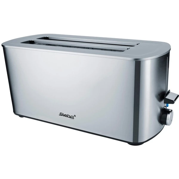Der Doppel-Langschlitztoaster TO 21 Inox von Steba passt mit seinem klassischen Edelstahl-Design perfekt in jede moderne Küche. Der Toaster röstet vier Scheiben Toast oder zwei große Brotscheiben gleichzeitig, wobei sich der Bräunungsgrad mittels Drehregler stufenlos einstellen lässt. Mit der automatischen Brotscheibenzentrierung wird immer eine optimale beidseitige Bräunung erreicht. Auf dem mitgelieferten Brötchenaufsatz lassen sich Brötchen oder leckere Croissants problemlos aufbacken. Egal ob Toasten, Auftauen oder Aufwärmen, der TO 21 Inox ist ein echtes Multitalent. Das Anti-Fingerprint Edelstahlgehäuse und die herausziehbare Krümelschublade machen auch die Reinigung spielend einfach. Der integrierte Überhitzungsschutz und die Stopp-Taste zum jederzeitigen Unterbrechen des Toastvorgangs gewährleisten stets sicheres Toasten.Art.-Nr.: 1574885