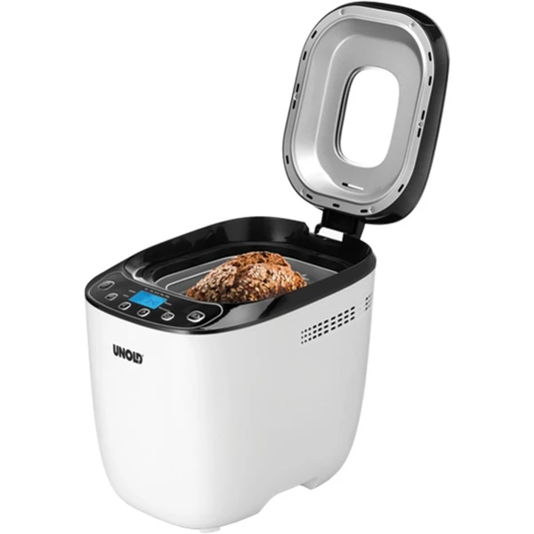 Der Backmeister Design von Unold bringt den frischen Duft nach Brot in die Küche. Mit seinem modernen Cool-Touch-Gehäuse in der Farbe Weiß passt er in jeden Haushalt. Über das benutzerfreundliche LCD-Display mit Soft-Touch- Bedienelementen kann man unter den 12 Programmen, davon eins für Marmelade und eins für glutenfreies Brot, die passende Brotsorte auswählen. Funktionen wie eine Zeitwahltaste, die Warmhaltefunktion sowie der Bräunungsgrad setzen keine Grenzen für das individuelle Brot. Wer es nicht abwarten kann, darf seinem Brot durch das große Sichtfenster beim Backen zusehen.Art.-Nr.: 1385475