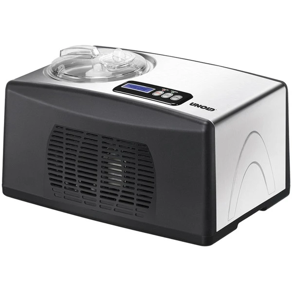 Mit der Eismaschine Cortina von UNOLD lassen sich bis 1,5 Liter Eis auf einmal schnell und individuell herstellen. Ob Großfamilie oder unersättliches Schleckermäulchen, die Menge reicht für jeden Bedarf. Für kontinuierliche Kälteerzeugung von bis zu minus 35 Grad sorgt ein automatischer selbstkühlender Kompressor. Zeitablauf und Temperatur der Zutaten werden digital im LCD-Display angezeigt. Ein eingebauter digitaler Timer lässt sich im 10 Minutenrhythmus auf bis zu eine Stunde einstellen. Der robuste Motor ist auch für den Dauerbetrieb bestens geeignet. Das Automatik-Programm sorgt für höchsten Bedienungskomfort. Der Eisbehälter aus Edelstahl ist einfach herausnehmbar und leicht zu reinigen. Verpackt ist die ganze Technik im eleganten Edelstahl-Design-Gehäuse.Art.-Nr.: 987262