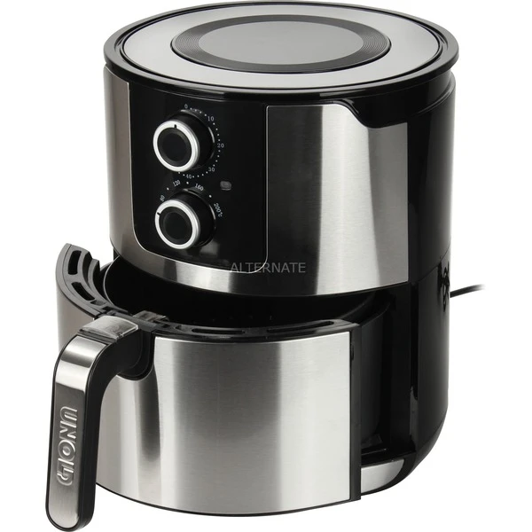 Frittieren, Grillen, Garen, Rösten: Die Heißluftfritteuse XL 58655 von Unold ist ein echtes Multitalent! Die Heißluft-Zirkulation sorgt im Nu für die gewünschte Temperatur zwischen 80° und 200°C, und ist deutlich schneller auf Betriebstemperatur als ein Backofen, das spart Energie und Zeit! Der spülmaschinengeeignete 5 Liter Frittierkorb eignet sich für ca. 1 kg Pommes frites. Die bedienfreundlichen Drehregler sorgen für die perfekte Temperatur und Gardauer. Die Abschaltautomatik und der Überhitzungsschutz bieten Sicherheit. Art.-Nr.: 1762071